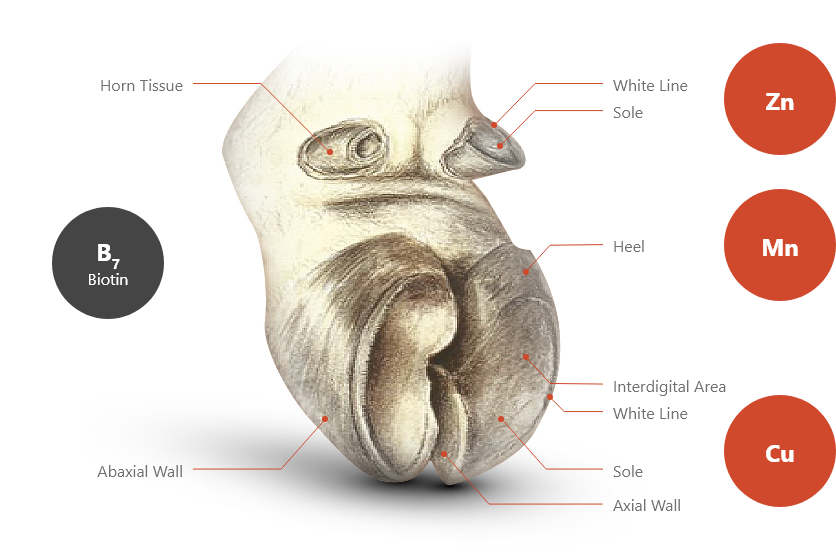 Supports keratinisation, ensuring hoof integrity.